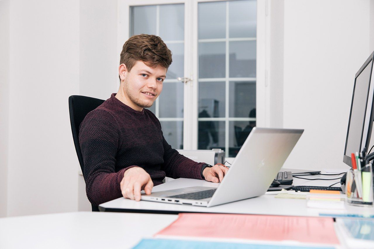 «Meine Arbeit ermöglicht mir, erworbenes Wissen aus dem Studium direkt in die Praxis umzusetzen.» Alle zwei Wochen verbringt Fabian Loosli einen Tag im Präsenzunterricht an der Fernfachhochschule, das restliche Pensum bewerkstelligt er von zuhause aus. So gelingt es ihm, Beruf und Studium unter einen Hut zu bringen. «Meine Stelle bei der Burgergemeinde Bern wurde speziell für Studierende aus den Bereichen Wirtschaftsinformatik oder Betriebsökonomie geschaffen. Mit meiner Studienvertiefung passt diese Stelle perfekt.»