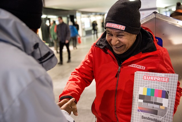 entstandene Schweizer Strassenmagazin «Surprise». Für die sozialkritischen Inhalte zeichnet ein professionelles Redaktionsteam verantwortlich. Das Gesicht von «Surprise» in der Öffentlichkeit sind aber seine Strassenverkäuferinnen und -verkäufer, allesamt Menschen ohne oder mit beschränktem Zugang zum regulären Arbeitsmarkt. Dieses Frühjahr zeichnete die Burgergemeinde «Surprise» mit dem burgerlichen Sozialpreis aus. Wir haben einen Blick hinter die Kulissen geworfen und die Menschen, die mit dem Verkauf von «Surprise» zu tun haben, getroffen.